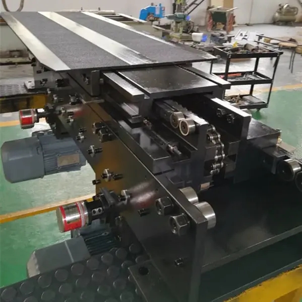 貨叉裝置是堆垛機存取貨物的執行機構,安裝在裝載平臺上。該機構采用兩級直線運動叉伸縮叉,由上叉、下叉和滾針軸承引導,減小了路面寬度,由于貨叉在接近貨物時超出自身長度,貨叉是一個分級伸縮裝置,下叉固定在承載體上進行支撐,上叉承載貨物。堆垛機伸縮叉的傳動原理是電機通過聯軸器和減速器減速,動力傳遞到...